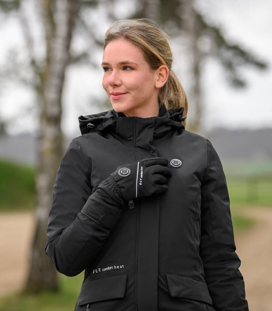 - Dekorativní logo E·L·T Comfort Heat na hřbetu ruky